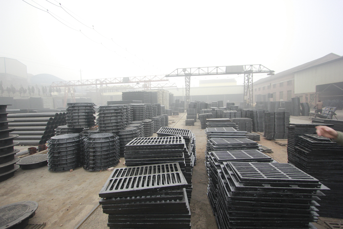 对于球墨井盖选择的工艺是非常考究的,因为它是使用的户外,天天经受日晒雨淋的,使用的原材料严格要求其化学成分,对原铁液要求的碳硅含量比灰铸铁高,降低球墨铸铁中锰,磷,硫的含量;而且铁液出炉温度比灰铸铁更高,以补偿球化在孕育处理的时候铁液温度的损失。然后再进行球化处理,就是往铁液中添加球化剂,再加入孕育剂进行孕育处理,球墨铸铁流动性较差,收缩较大,因此需要较高的浇注温度及较大的浇注系统尺寸,合理应用冒口,冷铁,采用顺序凝固原则,最后再进行一次热处理。